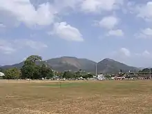 The Blue Mountains form a backdrop to the north, facing the George Headley Stand, with Kingston Harbour to the south. This view is currently blocked by the Northern Stand, built as part of the ground's redevelopment for the 2007 Cricket World Cup.[12]