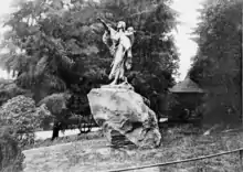 The sculpture was commissioned for the Lewis and Clark Centennial Exposition (1905) by the Committee of Portland Women, who requested a sculpture of "the only woman in the Lewis and Clark Expedition and in honor of the pioneer mother of old Oregon."[1] Funding sources included the Port of Portland and Women for Lewis and Clark Exposition, which was supported by women across the Western United States.[1] The sculpture was unveiled on July 6, 1905 and originally stood in the center of the exposition's plaza.[2] Suffragists present at the dedication included Susan B. Anthony, Abigail Scott Duniway and Anna Howard Shaw.[1] The statue was relocated to Washington Park on April 6, 1906, upon the fair's completion.[2] According to the Regional Arts & Culture Council, which administers the sculpture, Cooper was the first female artist to be represented in Portland's public sculpture collection.[1]