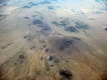 Oblique air photo of the Sacaton Mountains, facing east, August 2011