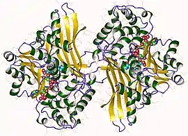 ![]() Saccharopine dehydrogenase (NADP+, L-glutamate-forming) homodimer, Pyricularia grisea | |||||||||