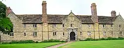 It is built from local sandstone. The main building was completed in 1619, and remains exceptionally well preserved. The original lock is still used on the Chapel door and much furniture from the seventeenth and eighteenth centuries is preserved inside. It is a Grade I listed building.[2] The building surrounds a courtyard which contains a well. The internal walls have large mullioned windows. The Great Hall features the original hammer-beam roof. Inside, the residences for the elderly have been modernized.