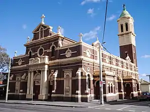 In the 1880s, the number of people attending St Mary's kept increasing. In order to host them, land was bought and planned for a new Roman Catholic church on Grey Street, St Kilda. The foundation stone was laid the same year the land was bought, on 13 July 1884 by Archbishop Goold and the church was dedicated on 7 December 1884.[1] Reverend William Henry Quick who came to Melbourne in 1872, was the first priest for the church. He was born in England and educated in Spain. Father William Ganly became the successor to Father Quick when he died in 1899.[1]