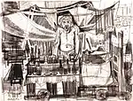 He was employed in Prahlad Karmarkar's studio. In one early painting there, he departed from pure narration to add his own perception and variation in the etching. Ramendranath chakravorty as a teacher of printmaking as a creative art form. Inspired by them, Ahmed learned the techniques of printmaking along with painting. Even in the mid-twentieth century, printmaking was not considered a mainstream medium in the subcontinent. Even now in the Government College of Art & Craft in Kolkata at the bachelor's degree level, printmaking is taught as a subject painting. The print making medium was not at that time among the mainstream media like painting and sculpture and one of Ahmed's greatest achievements is that he helped raise this discipline of apparently secondary importance by adopting it as the main medium for his creative works and assisted it to reach a status equal to that of painting and sculpture. While living in Kolkata, the life of indigenous santals, give him inspiration to draw various paintings. But after coming back to East Pakistan the look, posture and the environment of his picture changed. "Empty basket", lemonade stand (pl.8.15) painted in oil colors in 1952 are quite perceptibly pictures of East Pakistan. The two painting : “Fishing" and "carpenter" done between 1954 and 1956 deserve special mention for two reasons. In these two paintings we notice that he has tried to experiment with shapes more than in his landscape which are composed with the combination of light and shade. The color of these two paintings are strongly flat, the edges or contours of the forms subjective exaggeration has been resorted to rather than attempting to remain faithful to pictorially reconstruct the visual world in his own way. As a result, from this period his paintings gradually started to move towards abstraction. In 1958 he completed the diploma course in printmaking from the Central School of Art and Design in London with distinction from 1956 to 1974. He visited different galleries of England, France, Italy, Germany, Belgium, Netherlands, Switzerland, Soviet Union and India.