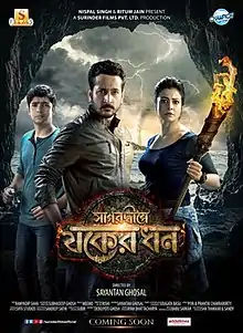 Sagardwipey Jawker Dhan is a 2019 Bengali action adventure film directed by Sayantan Ghosal and written by Sougata Basu with influence of the original story by Hemendra Kumar Roy.[1][2] The film is based on the adventure story of Bimal-Kumar duo written by Hemendra Kumar Roy.[3] It is the second movie after Jawker Dhan. The film had a theatrical release on 6 December 2019.