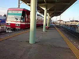 The station has one elevated island platform with the station building underneath. The station building has automated ticket machines, and automated turnstiles which accept the NicePass smart card, as well as ET Card, a magnetic card ticketing system. The station is staffed.