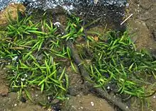 Sagittaria secundifolia (Kral's water plantain,[1] Little River arrowhead[2]) is an aquatic plant, growing on or below the water, on rocky creek beds and nearby slopes. It is found only along the Little River of Alabama,[3] and is endangered. It is often found in association with azaleas (Rhododendron spp), mountain laurel (Kalmia) and holly (Ilex). Perennial, aquatic herb with an underwater, thick horizontal root about 5–10 centimeters (2–4 in) long and 6 millimeters (0.25 in) thick. This particular species grows in the cracks in stream beds. Each leaf arches upward and is 5–10 centimeters (2–4 in) long with a pointed tip. Sagittaria secundifolia is found in the Little River drainage in DeKalb and Cherokee counties, the Town Creek drainage in DeKalb County, and in the West Sipsey Fork in Winston County in Alabama. .[4]