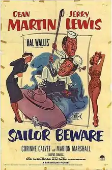 Sailor Beware is a 1952 American comedy film starring the comedy team of Martin and Lewis and is an adaption of a 1933 Kenyon Nicholson and Charles Robinson play of the same name. It was released on February 9, 1952 by Paramount Pictures. The working title was At Sea with the Navy.[3]