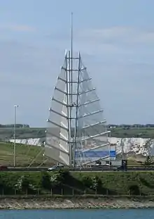 The Trimast, commonly referred to as the Sails of the South, is a 43 m (141 ft)–high structure situated between two carriageways of the M275 motorway just outside Portsmouth, England.[1] It was unveiled in March 2001 in order to enhance the entrance to the city as part of the regeneration scheme The Gateway Project. HGP Architects, whose offices are located in Fareham less than 5 miles (8.0 km) away, realised the scheme and installation. The structure is one of the tallest in Portsmouth.