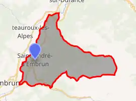 Saint-André-d'Embrun (French pronunciation: [sɛ̃.t‿ɑ̃dʁe dɑ̃bʁœ̃], literally Saint-André of Embrun; Occitan: Sant Andreu d'Ambrun) is a commune in the Hautes-Alpes department in southeastern France. Surrounded by the towns of Chateauroux-les-Alpes, Embrun and Crévoux, Saint-André-d'Embrun is located 36 km northeast of Gap, the largest city nearby.[3]