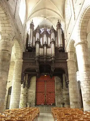 The Cavaillé-Coll organ was built in 1848 replacing a much smaller instrument. Aristide Cavaillé-Coll is one of the great organ makers of France. The instrument was classified as a "Monument historique" in 1975. From 1986 to 1988 the organ was restored by Jean Renault. The organ casing or buffet in French was made in the 19th century by the Étienne brothers. They included in the work some panels which came originally from England in 1540. The casing was classified as a "Monument historique" in 1906 when the cathedral itself was similarly classified.[5] The organ is also decorated with a statue of sainte Cecilia by Jean-Marie Valentin.