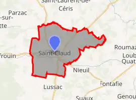 Saint-Claud (French pronunciation: [sɛ̃ klo]; Occitan: Sent Claud) is a commune in the Charente department in southwestern France.