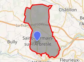 Saint-Germain-Nuelles is a commune in the Rhône department in Auvergne-Rhône-Alpes region in eastern France. It is the result of the merger, on 1 January 2013, of the communes of Saint-Germain-sur-l'Arbresle and Nuelles.[3]