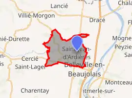 Saint-Jean-d'Ardières (French pronunciation: [sɛ̃ ʒɑ̃ daʁdjɛʁ], literally Saint-Jean of Ardières) is a former commune in the Rhône department in eastern France. On 1 January 2019, it was merged into the new commune Belleville-en-Beaujolais.[2]