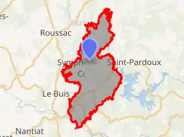 Saint-Symphorien-sur-Couze (Occitan: Sent Aforian) is a former commune in the Haute-Vienne department in the Nouvelle-Aquitaine region in west-central France. On 1 January 2019, it was merged into the new commune Saint-Pardoux-le-Lac.[2]