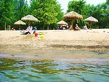 The town is home to a popular beach which can accommodate as many as 10,000 people. Located on Lac Saint-François, nautical sports are among the region's most popular activities and the town also has a golf course.[11]