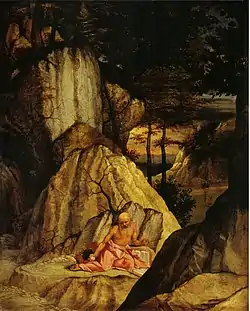 Saint Jerome in Penitence is an oil on panel painting by Italian Renaissance artist Lorenzo Lotto. Its signature ("Lotus") is fully legible, but the final number of the date is illegible, though it is usually dated to around 1506. It is now in the Louvre.[1]