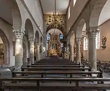 Up to the end of the affiliation with the Benedictine monastery of Saint Alban in 1419, the church had hardly changed structurally. In the 1420s the southern Carolingian sanctuary was replaced by a gothic Holy Cross chapel, in the place of today's vestry. To the northern aisle, three further chapels were added.