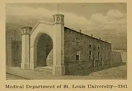Saint Louis University School of Medicine was established in 1836 as the Saint Louis University Medical Department, but no active teaching occurred until 1841.[3]