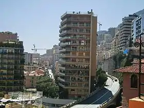 Saint Michel lies on the north-centre of the principality, just north of Monte Carlo.[3] Saint Michel is generally considered part of Monte Carlo even though it is its own administrative Ward.[4] It runs directly along the neighbouring French town of Beausoleil, as well as the Monégasque wards of Monte Carlo, Saint Roman and Moneghetti.[5][6]