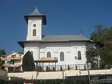 The church is made of brick on a stone foundation and covered in a tin roof. The nave is rectangular, the altar arched. The bell tower sits atop the foyer; it is prism-shaped, with a square base, and has four curtained windows. An arch separates the vestibule from the nave, and both have half-sphere ceilings. Another arch, above the iconostasis, separates the nave from the altar.[1] The church is sometimes called Prepodobna (Slavonic for "most holy"), Sfânta Vineri or Vinerea Mare (another name for Parascheva).[2]