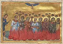 Saint Peleus was an early Christian martyr. An Egyptian bishop, Peleus was one of four Christians who led Mass for the persecuted Christians condemned to work in the Palestinian quarries in the wake of the Diocletianic Persecution. When the Roman emperor Galerius learned of this, he had Peleus burned alive along with the other leaders (Nilus, Elias and Patermutius), and the Christians dispersed to mines in Cyprus and Lebanon. He is venerated as a saint in the Roman Catholic Church, Eastern Orthodox Church and Coptic Orthodox Church.[1]