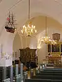 The church has two votive ships named Haabet and Ørnen. Haabet, which means the hope, was built in 1800. It was created by Johs Rasmussen, a blacksmith from Slagelse, reportedly after he had gone blind. Haabet was restored in 1998 by Ove Andersen. Ørnen, which translates to the Owl, was built by a painter from Slagelse, Ove Andersen. The ship was commissioned and donated by Ole Haugaard, who died in April 1997 and did not live to see it hung in the nave on december 14, 1997. At Haugaard's request, one and two øre pieces were laid under the masts.