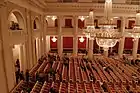 The Bolshoi Zal (Russian: Большой зал, meaning the Grand Hall) has a capacity of 1500 seats. It is one of the best known music halls in Russia. F.Liszt, H.Berlioz, R.Wagner, A.Dvořák, J.Sibelius, C.-A.Debussy, R.Strauss, S.Rachmaninoff, S.Prokofiev, D.Shostakovich, A.Scriabin, G.Mahler, A.Rubinstein, K.Schumann, P.Viardo, P.Sarasate, A.Schoenberg, I.Stravinsky, B.Bartok, P.Hindemith and others renowned musicians of the XIX-ХХ centuries performed here, and many works of such exponents of Russian classical tradition as A.Borodin, M.Mussorgsky, P.Tchaikovsky, N.Rimsky-Korsakov, A.Glazunov were premiered here. The hall's acoustics are excellent, but judged by some not to be the best in town.[2]