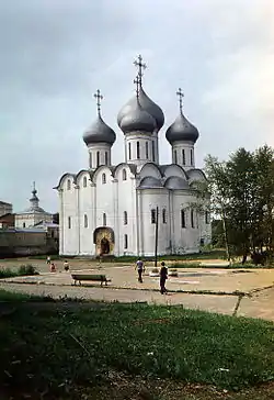 Saint Sophia Cathedral (Russian: Софийский собор) is a Russian Orthodox cathedral, the oldest surviving stone building in the city of Vologda. It was constructed between 1568 and 1570 under personal supervision of Tsar Ivan the Terrible in the period when Vologda was the capital of the Oprichnina lands in Russia, and completed in 1587. The cathedral is located on the right bank of the Vologda River, just outside the former fortress known as the Vologda Kremlin.[1]
