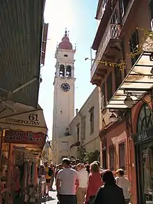 Saint Spyridon Church is a Greek Orthodox church located in Corfu, Greece. It was built in the 1580s. It houses the relics of Saint Spyridon and it is located in the old town of Corfu. It is a single-nave basilica and its bell tower is the highest in the Ionian Islands.[1] It is the most famous church in Corfu.[1][2][3][4][5]