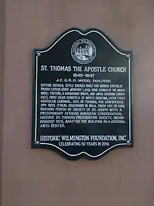 Constructed in 1846.[1] by Robert B. Wood, St Thomas the Apostle served a small but growing parish of Catholics in New Hanover County. The church's construction and parish was over looked by Father Thomas Murphy. The church later became the pro-Cathedral of North Carolina when Fr. James Gibbons was consecrated as the Vicar-Apostolic.[2] In 1908, the parish bought land at South Fifth Street and Ann, where the Basilica Shrine of St Mary would later be completed in 1912, which allowed the growing parish more space.