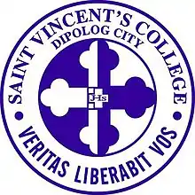 Saint Vincent’s College (Spanish: Colegio de San Vicente), officially known as Saint Vincent's College, Incorporated and abbreviated as SVCI, is the oldest and the most recognized higher educational institution in Zamboanga del Norte, Philippines; situated in the heart of Dipolog City. SVC is a private, nonsectarian, non-stock and non-profit institution duly approved and authorized by the Department of Education and the Commission on Higher Education to offer course programs from kindergarten to postgraduate levels.