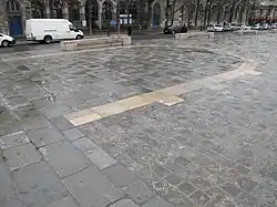 The Sainte-Geneviève and Saint-Christophe parishes, both situated at present-day Parvis Notre-Dame – Place Jean-Paul-II, were suppressed in 1747 and merged with the parish of Sainte-Madeleine. The church of Sainte-Geneviève-des-Ardents was destroyed in January 1747 to enable the extension works of the Hôpital des Enfants-Trouvés.[2] The walls of the church were excavated when the archaeological crypt was built. Now, the outline of the former building is shown by a lighter tiling on Parvis Notre-Dame.[5]