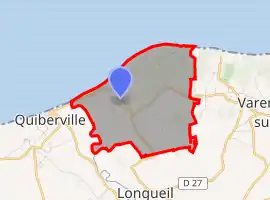 A farming and coastal village situated in the Pays de Caux, some 6 miles (9.7 km) west of Dieppe at the junction of the D75 and the D323 roads. Huge chalk cliffs rise up from a pebble beach overlooking the English Channel, to form the northern border of the commune.