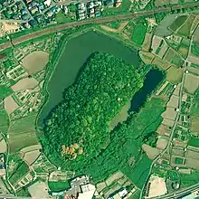 ![]() Sairyō Kofun, anterior portion to the right, posterior portion to the left | |