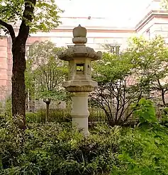 In 1960, another gift was given to the park, this time by the City of Tokyo in the form of a stone lantern (tōrō), when New York City became her sister city. The then Crown Prince, and later Emperor of Japan, Akihito, was in attendance during the official dedication on October 10 of that year. Crown Prince Akihito would later rededicate the lantern with his princess in 1987.[10]