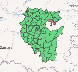 Within the framework of administrative divisions, Salavatsky District is one of the fifty-four in the Republic of Bashkortostan.[1] The district is divided into sixteen selsoviets, comprising sixty rural localities.[6] As a municipal division, the district is incorporated as Salavatsky Municipal District.[7] Its sixteen selsoviets are incorporated as sixteen rural settlements within the municipal district.[7] The selo of Maloyaz serves as the administrative center of both the administrative[3] and municipal[7] district.