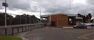 After many years of discussions between the local council and rail authorities,[3] the station was relocated in 1983, to a site outside the town, on a new section of track which linked the Melbourne and Stratford lines, without the need to run in and out of the original station. This formed a rail triangle for a short period of time. The goods facilities were first to be moved, which occurred on 28 September 1983,[4] using part of the Sale – Stratford line as the base of the yard. The last train ran to the old station on 12 November 1983, with the new station officially opening on 4 December of that year.[2] The last remnant of the railway line arriving directly into Sale was abolished in 1985, when parts of the former Port of Sale spur line were removed.[5] Full signalling was not provided until 1987.[2] Station staff were withdrawn in 1993, but have since been restored.[2]
