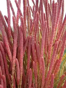 Salicornia rubra, the Rocky Mountain glasswort, is a species of flowering plant in the family Amaranthaceae.[2] It is native to colder or higher areas of North America; the Yukon, Nunavut, British Columbia, Alberta, Saskatchewan, Manitoba, and Ontario in Canada, and the western and north-central US. It has been introduced to Quebec and Michigan, and has gone extinct in Illinois.[1] A halophyte, it is one of the most salt-tolerant plants of North America.[3]