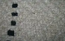 The Salish used mountain goat wool, or SAH-ay, as the main source of fiber for weaving. Blankets made from goat hair were the most valuable.[2] Originally, the Salish obtained wool high in the mountains where the mountain goats spent their summers and shed their old wool. Wool might be found caught or tangled in low bushes. During this season, they would also save wool acquired from goats killed for food. They would roll up the skin with flesh sides together and after several days, the wool would shed naturally. Then it was plucked off to be made into yarn. Before the raw fiber was spun into workable threads, it was mixed with a white chalk-like clay, absorbing the grease allowing the wool fibers to cling together. Domestic sheep wool has now fully replaced mountain goat wool, which is rare and difficult to obtain.[5]