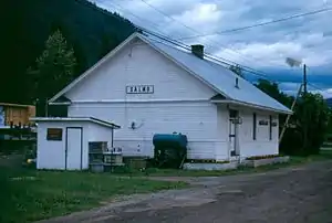 West Kootenay Power and Light brought electricity in 1931. Incorporated as a village in 1946, Salmo benefits from passing tourists.[7] On the western perimeter, at the Sal-crest Motel, is the word's oldest phone booth (1977).[9] On the northwest side of the highway downtown, the former N&SF combination station/freight shed (a designated heritage building) stands on the Salmo-Troup Rail Trail. This building dates from 1913,[10] a replacement after the Great Northern Railway (GN) relocated the original to Northport, Washington, over a dispute with the local council.[7] Farther along at the information board is the word's largest penny (1995).[9]