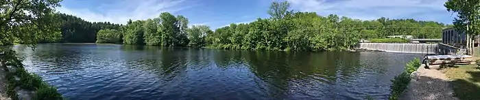 The Salmon Falls River is a tributary of the Piscataqua River in the U.S. states of Maine and New Hampshire. It rises at Great East Lake, Newichawannock Canal, and Horn Pond and flows south-southeast for approximately 38 miles (61 km), forming the border between York County, Maine, and Strafford County, New Hampshire.[1]