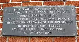 Saltash railway station serves the town of Saltash in Cornwall, England. It is on the south side of the town between the Royal Albert Bridge which crosses the River Tamar and the Coombe Viaduct which spans a small tributary of the same river. Trains are operated by Great Western Railway. The station is 250 miles 8 chains (402.5 km) from London Paddington via Bristol Temple Meads. The line singles at the east end of the station passing over the Royal Albert Bridge.