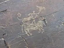 The Saluki's ancestors were historically bred in the Fertile Crescent, where agriculture originated.[1] Images of running dogs with long, narrow bodies adorn pottery found in Susa, southwest Iran that dates back to 6,000 years ago,[24] despite the depictions bearing erect, pointed ears.[25] Dogs looking similar to Salukis are shown on wall carvings of the Sumerian empire (now Iraq), dating from 6,000 to 7,000 BC.[26] The ancient skeletal remains of a dog identified as being of the greyhound/saluki form was excavated at Tell Brak in modern Syria, and dated to approximately 4,000 years before present.[27][28] Dogs that look similar to Salukis and Greyhounds were increasingly depicted on Egyptian tombs from the Middle Kingdom (2134 BC–1785 AD) onward,[7]: 55 however it was during the Eighteenth dynasty of Egypt that Saluki-like dogs rose to prominence,[29] replacing hunting dogs called tesem (thought to be similar to modern pariah dogs[30] or a generic term for a dog) in ancient Egyptian art.[31] The variety spread southward into the Sudan.[32]