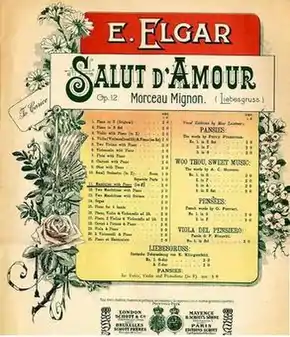 Salut d'Amour (Liebesgruß), Op. 12, is a musical work composed by Edward Elgar in 1888, originally written for violin and piano.