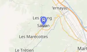 Salvan railway station (French: Gare de Salvan) is a railway station in the municipality of Salvan, in the Swiss canton of Valais. It is located on the 1,000 mm (3 ft 3+3⁄8 in) gauge Martigny–Châtelard line of Transports de Martigny et Régions.[1]