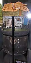 Salyut 5 was an Almaz spacecraft, the last of three to be launched as space stations after Salyut 2 and Salyut 3. Like its predecessors, it was 14.55 metres (47.7 ft) long, with a maximum diameter of 4.15 metres (13.6 ft). It had a habitable interior volume of 100 cubic metres (3,500 cu ft), and a mass at launch of 19,000 kilograms (42,000 lb). The station was equipped with a single docking port for Soyuz spacecraft, with the Soyuz 7K-T being the configuration in service at the time. Two solar arrays mounted laterally at the same end of the station as the docking port provided it with power. The station was equipped with a KSI capsule to return research data and materials.