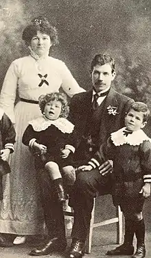 In 1908, on a trip to South Australia to work as a labourer on a salt pan, Sam Byrne courted his cousin Florence Pope. Florence came from a farming family along the banks of the Murray River.[29] After exchanging letters over the coming years, she moved to Broken Hill and the couple married with Anglican rites in 1910.[6] They bought their first house in the suburb of Railway Town, next to Byrne's foster aunt's house. The house was destroyed by a fire in 1911.[30] Over the next few years, the couple had three sons.[31]
