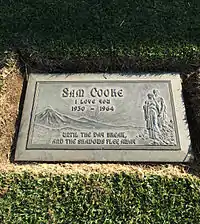 The first funeral service for Cooke was held on December 18, 1964, at A. R. Leak Funeral Home in Chicago; 200,000 fans lined up for more than four city blocks to view his body.[44][79] Afterward, his body was flown back to Los Angeles for a second service, at the Mount Sinai Baptist Church on December 19,[80] which included a much-heralded performance of "The Angels Keep Watching Over Me" by Ray Charles, who stood in for a grief-stricken Bessie Griffin. Cooke was interred at Forest Lawn Memorial Park Cemetery in Glendale, California.[44][81]