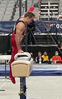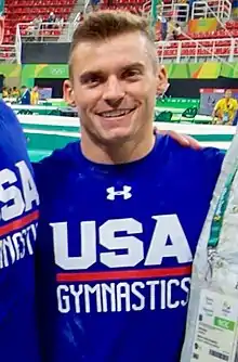 Samuel Anthony Mikulak (born October 13, 1992)[1] is an American former artistic gymnast. He is a six-time U.S. national all-around champion (2013–2016, 2018–2019), the 2018 World bronze medalist on high bar, and a three-time Olympian (2012, 2016, and 2020). He is also an eight-time NCAA champion, winning the team, individual all-around and several individual event titles at the 2011, 2013 and 2014 NCAA Men's Gymnastics championships.[2] Mikulak trains at the U.S. Olympic & Paralympic Training Center in Colorado Springs, Colorado.