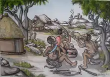 Samuel Songo (1929 – c. 1977[1]) was a Rhodesian artist.,[2] known for his works depicting African iconography and traditional African life. Songo was disabled and used a wheelchair. He spent most of his life working through the Cyrene Mission School, producing art on the behest of Frank McEwen, a British expatriate who helped establish and later ran the Rhodesian National Gallery of Art[3] (now the National Gallery of Zimbabwe). Songo's early work consisted of occasional paintings and sculpture, however, in later years, he worked almost exclusively in the classic traditions of Shona stone sculpture.